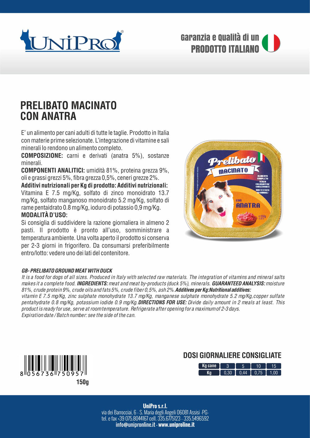 Tutti gli alimenti Unipro sono PRODOTTI IN ITALIA, quindi certezza e garanzia di assoluta qualità. Utilizziamo come materie prime carni di alta qualità, ricche di proteina che ne determinano l’ALTO VALORE NUTRITIVO risultando quindi un prodotto unico nel mercato. Ogni porzione contiene carne scelta estremamente nutriente, in forma altamente digeribile per donare all’animale il massimo della salute e della vitalità.