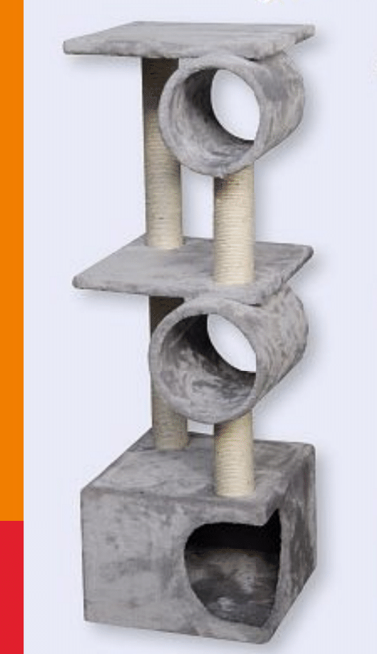 Intorno all’albero del gatto ci sono più tubi di 7 cm di diametro, così il tuo gatto non sarà mai troppo lontano da un posto per grattarsi