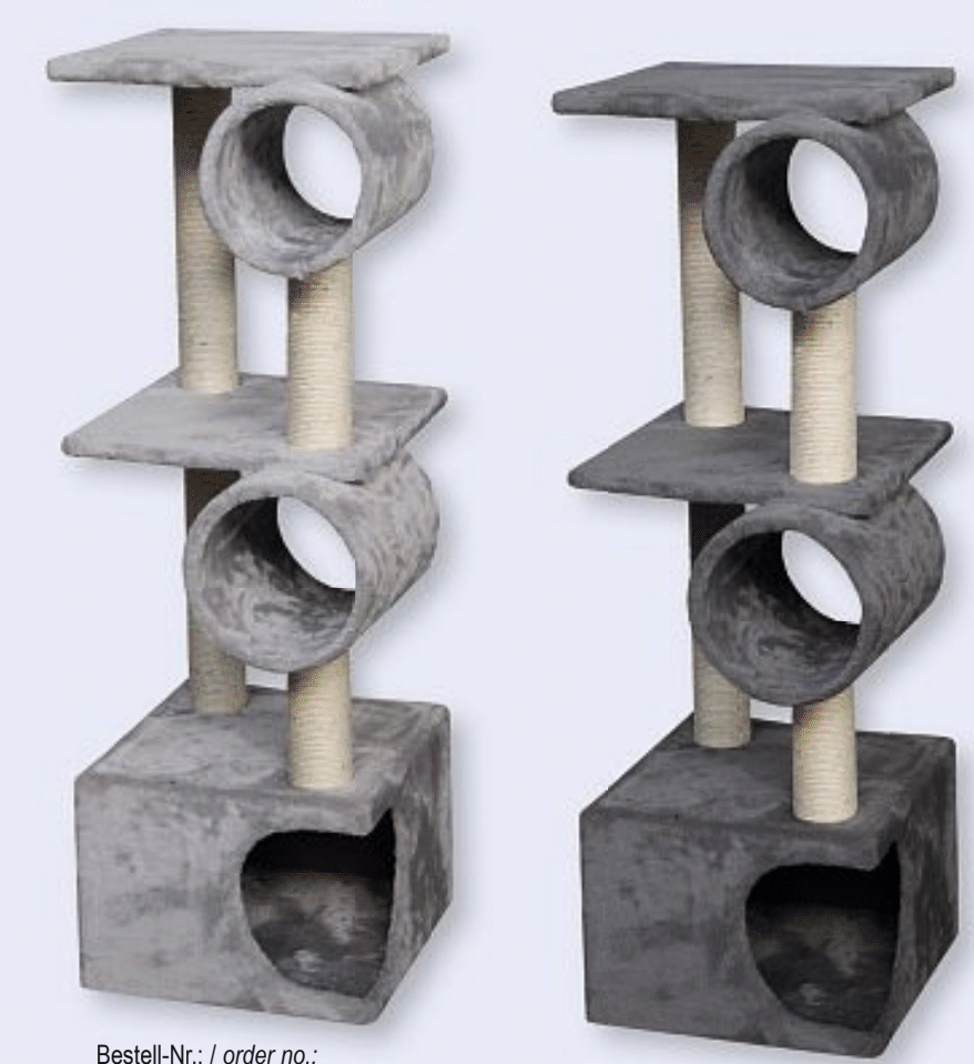 Su ciascuno dei livelli superiori si trovano due tubi di gioco circolari che possono essere scalati e forniscono anche un luogo di riposo aperto per il vostro gatto dove può tenere d’occhio tutto ciò che lo circonda.