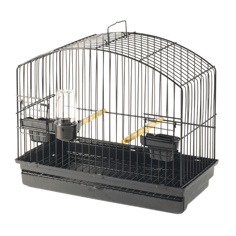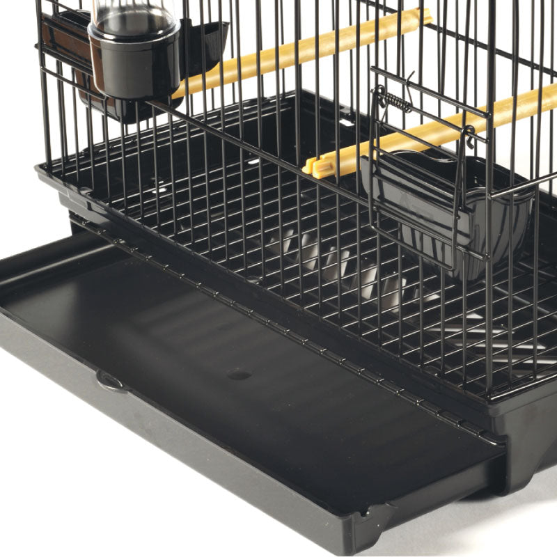 la gabbia è dotata di una griglia di fondo, che può essere facilmente rimossa, che consente di separare gli uccelli dal cassetto di raccolta escrementi.