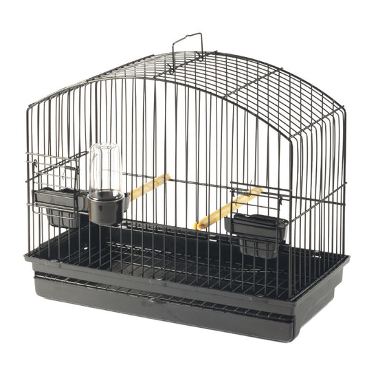verniciato e plastica e venduto completo di accessori: mangiatoia, beverino e posatoi.