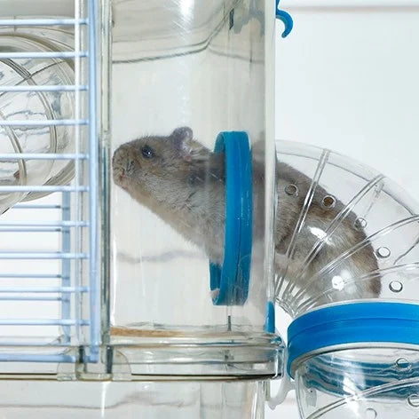 I topi domestici, i criceti o altri piccoli roditori hanno bisogno di spazio adatto per il loro benessere. Questi piccoli mammiferi hanno bisogno di uno spazio con un nido accogliente, uno spazio per fare un po' di esercizio, dove fare i loro bisogni e mangiare. Un vantaggio principale della gabbia in plastica è che è molto più facile da pulire. Il tuo piccolo compagno avrà quindi la garanzia di vivere in un ambiente sano e igienico. L'altro vantaggio di questo tipo di gabbia è che permette a tutta la famiglia di godere del proprio animale da compagnia e poterlo osservare facilmente. Non c'è bisogno di disturbare troppo il tuo piccolo criceto per controllare cosa fa, grazie alle sue pareti trasparenti lo vedrai direttamente!