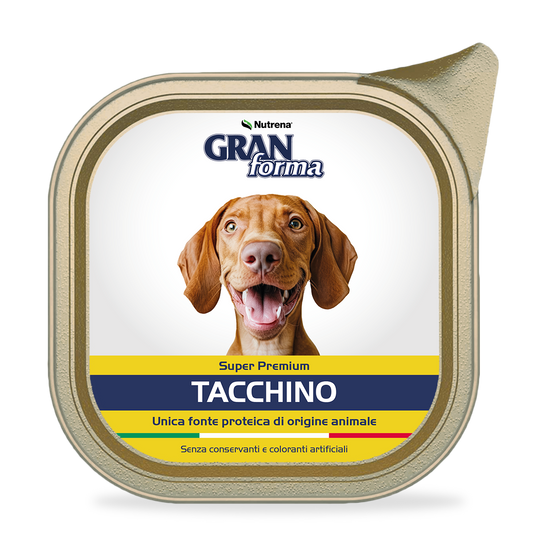 GRANFORMA PATE' MONOPROTEIN TACCHINO è un alimento premium per cani di altissima qualità, formulato con il 60% di tacchino come unica fonte proteica animale. Questa deliziosa ricetta in formato da 150g ciascuna è stata sviluppata per soddisfare le esigenze nutrizionali dei cani di tutte le taglie. Il paté è preparato senza conservanti e coloranti artificiali, garantendo un'alimentazione naturale e genuina per il vostro amico a quattro zampe. La sua consistenza cremosa e appetitosa rende ogni pasto un momento di puro piacere. Ideale per cani con sensibilità alimentari o per chi preferisce una dieta monoproteica, questo paté assicura una digestione ottimale e un apporto nutrizionale completo. Conservare in luogo fresco e asciutto dopo l'apertura. Per un corretto utilizzo, seguire le indicazioni di somministrazione riportate sulla confezione in base al peso e all'età del vostro cane.