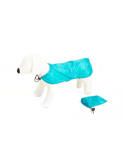 impermeabile tascabile color turchese per cane di piccola taglia