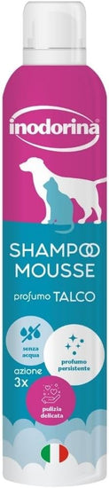 SHAMPOO A SECCO PER CANI E GATTI: Lo Shampoo Mousse Inodorina è ideale per una pulizia facile e senza acqua, lasciando il manto di cani, gatti e cuccioli fresco, lucente e perfettamente pulito