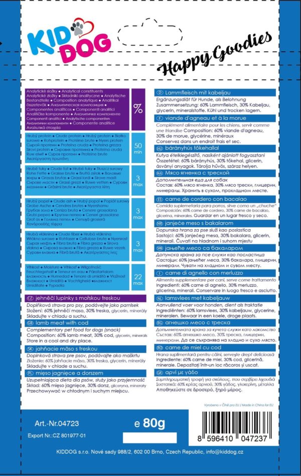 KID DOG CHIPS DI AGNELLO & MERLUZZO GLUTEN FREE NO SUGAR80 g
