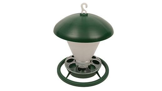 Mangiatoia Comber della 2GR ideale in allevamenti con voliere di grosse dimensione, progettata per avere la funzionalità di mangiatoia (1 kg di mangime) e allo stesso tempo per essere utilizzata come abbeveratoio (1 litro di acqua). Un gancio nella parte alta consente la possibilità di appenderla e lasciarla sospesa evitando così il contatto con il suolo. Il contenitore è realizzato in plastica opaca per proteggere il mangime o l'acqua dai raggi del sole ed il coperchio verde per ulteriore protezione