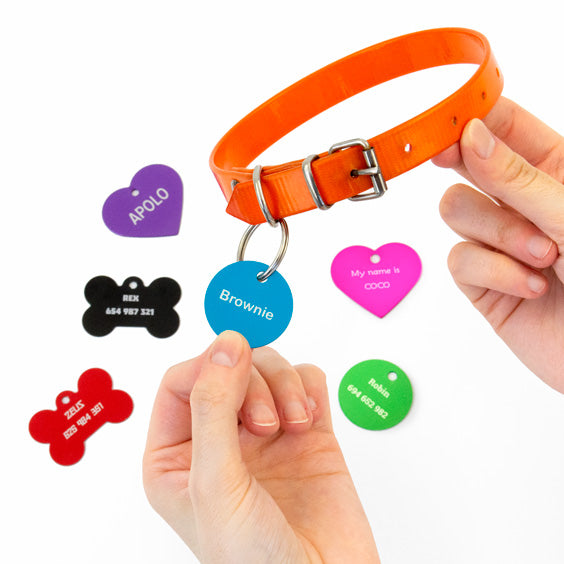 Medagliette per cani e gatti in alluminio anodizzato, materiale di qualità superiore, resistente e bello. Le medagliette sono personalizzabili con incisione su entrambi i lati, disponibili in varie forme, misure e colori, basta scegliere quelle che più ti piacciono! Sempre compreso nell'acquisto ti spediremo l'anellino per unire la medaglietta al collare! Perché acquistare una medaglietta per il tuo animale domestico? La medaglietta è da considerarsi complementare al microchip. É immediatamente visibile e leggibile nel caso il tuo animale domestico si smarrisca. Quando sarà ritrovato, affinché tu possa essere contattato, non sarà necessario rivolgersi a un professionista, come avviene nel caso del tatuaggio o del microchip. In questo modo potrai essere informato immediatamente del ritrovamento. Potrai fare incidere sulla medaglietta il nome dell'animale e il numero di telefono, indirizzo o email. L'Incisione avverrà al graffio.