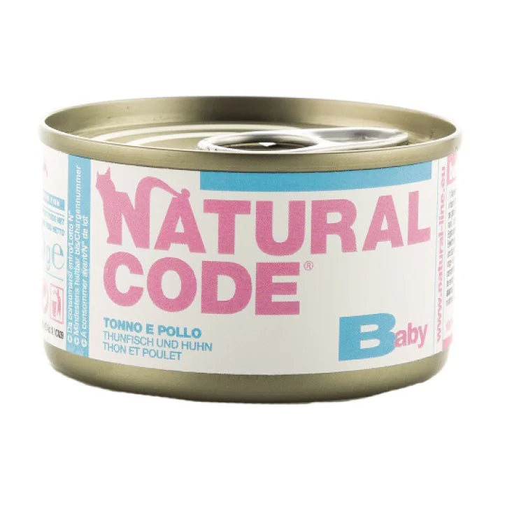 Natural Code Baby è un alimento complementare per gattini da 0 a 4 mesi. Può essere utilizzato anche per le gatte in gravidanza e allattamento. La combinazione tra Tonno e pollo rende molto appetibile il pasto per i gatti più piccoli. La consistenza molto morbida e semiliquida da la possibilità di essere somministrato anche tramite una siringa, specie nei gattini più piccoli che non possono essere allattati dalla madre.