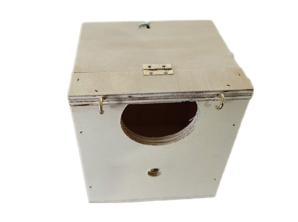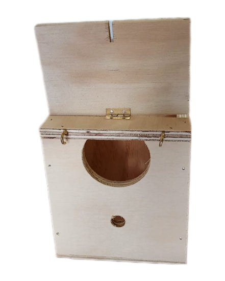 nido in legno naturale non trattato per uccelli esotici. utile per la riproduzione di tutti gli uccelli esotici di taglia piccola, come diamantini, passeri del giappone, bengalini, ed esotici africani. Con tettuccio apribile per poter pulire più facilmente e controllare la covata