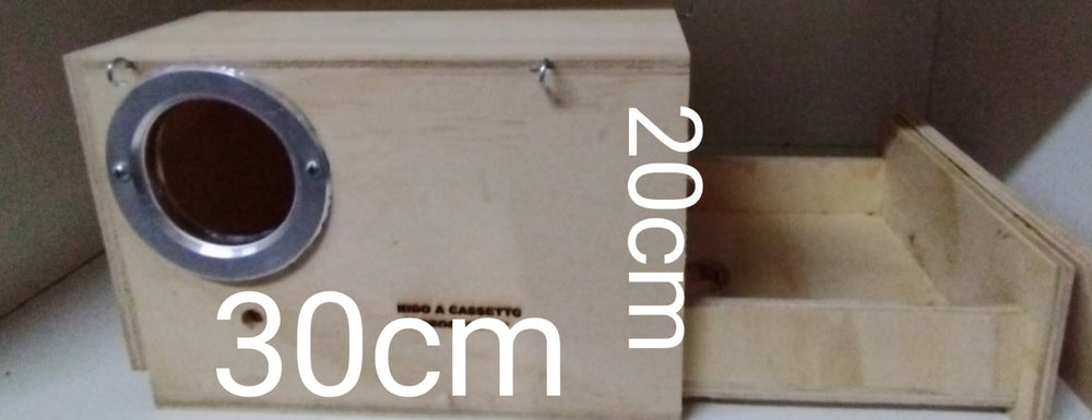 NIDO PER CALOPSITE E PARROCCHETTO A CASSETTA ESTRAIBILE PER UNA FACILE PULIZIA DEL NIDO E PER UN FACILE CONTROLLO DEI NIDIACEI CON PROTEZIONE CONTORNO INGRESSO IN ALLUMINIO