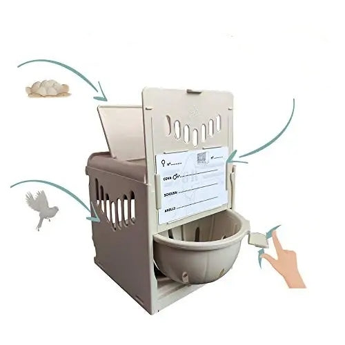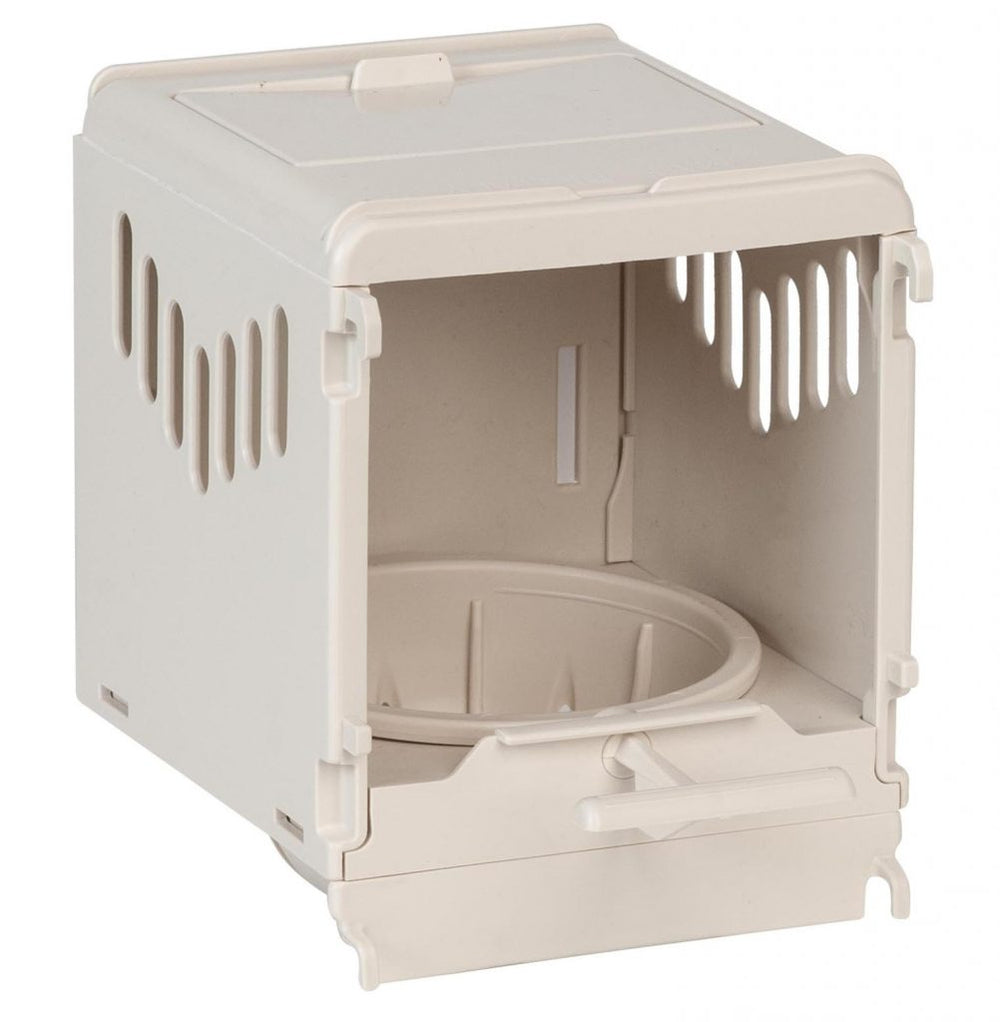 Il nido esterno per gli allevamenti professionali, applicabile sulla porta della gabbia cova, dotato di coppetta estraibile. La coppetta ha un diametro di 10 cm e un vano portauova; il nido viene fornito con propria scheda cova. Il nido SamSara della 2GR è il nuovo nido esterno per canarini ed uccelli fringilli, realizzato interamente in plastica. Sulla parte superiore presenta un pratico e comodo cassetto portauova, mentre nella parte posteriore presenta un apposito scomparto in cui posizionare la scheda cova per annotazioni varie. Il nido SamSara della 2GR è un pratico e comodo nido per canarini e uccelli fringillidi in generale, realizzato interamente in solida plastica. Il nido SamSara appartiene alla categoria dei nidi esterni ovvero va applicata esternamente alla gabbia in corrispondenza di uno sportellino, in questo modo si evita di ridurre lo spazio vitale all'interno della gabbia stessa. Sulla parte superiore del nido per canarini SamSara è presente un apposito cassetto porta uova con coperchio per contenere e proteggere le uova durante il periodo della deposizione se sostituite con le uova finite in plastica .