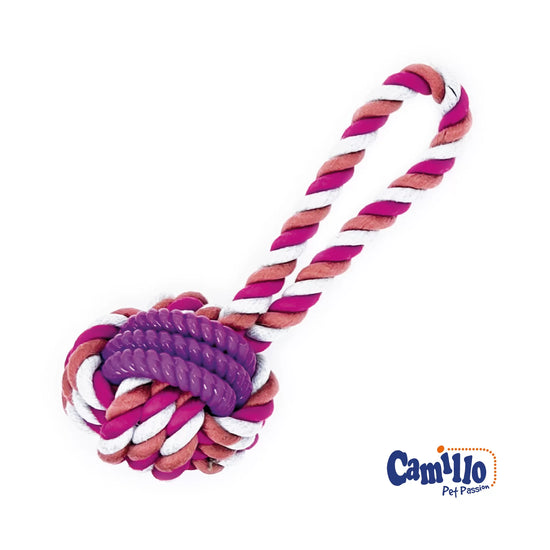 Adatto sia per il gioco interattivo sia per l’addestramento. Il gioco interattivo tra cane e uomo, è di stimolo per il cane e permette di instaurare il giusto rapporto con il nostro amico a 4 zampe. Particolarmente indicato per il riporto. In materiale naturale con inserti in gomma che stimolano la masticazione e aiutano a mantenere l’igiene orale. Scopri tutta la linea di giochi in corda Camillo!Dimensione: Ø 7 cm – 22 cm