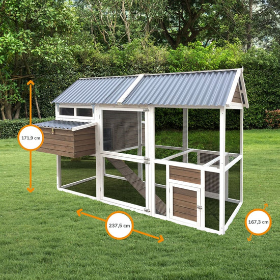 La parte recinto coperta da un tetto pieno in PVC lascerà le vostre galline al riparo anche in caso di pioggia.