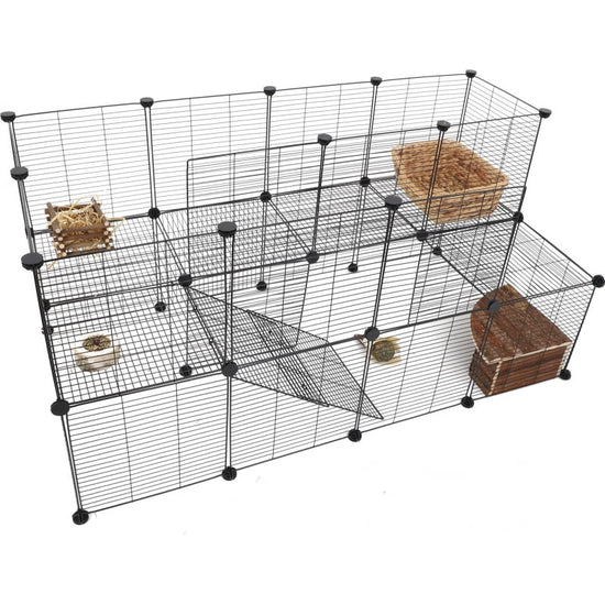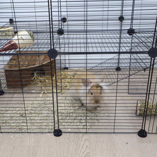 Questo recinto per animali a 2 livelli è modulare e si adatta alle tue esigenze. Crea una casa personalizzabile per il tuo coniglio o roditore. Puoi configurarlo in base alla disposizione e alle dimensioni della tua stanza.